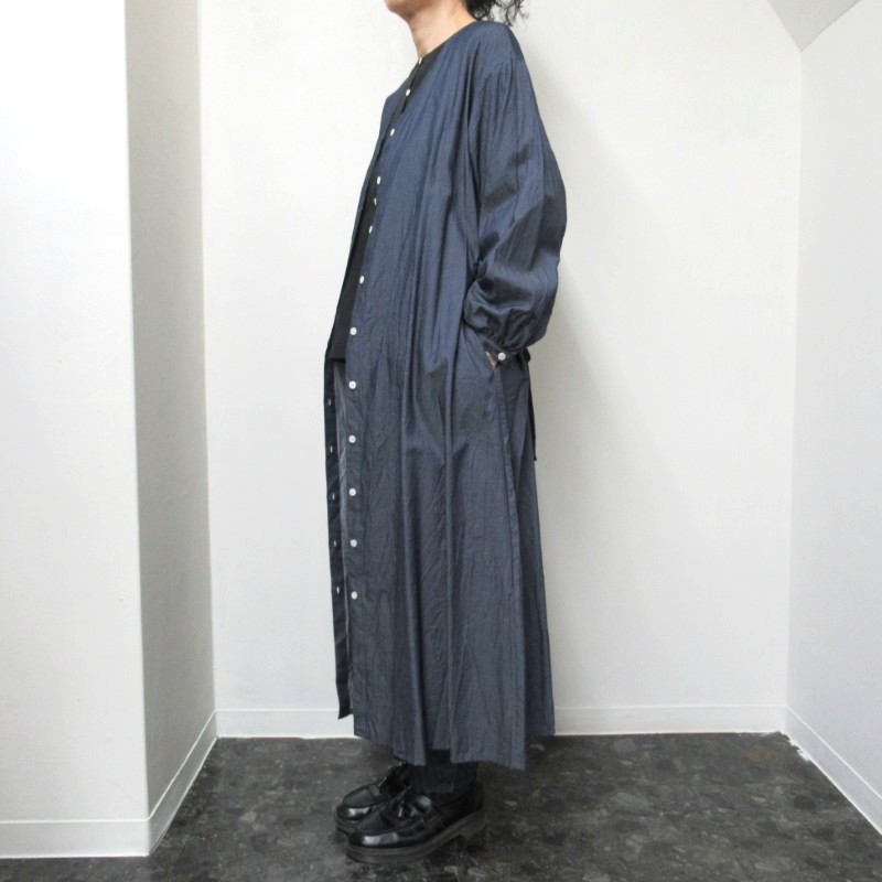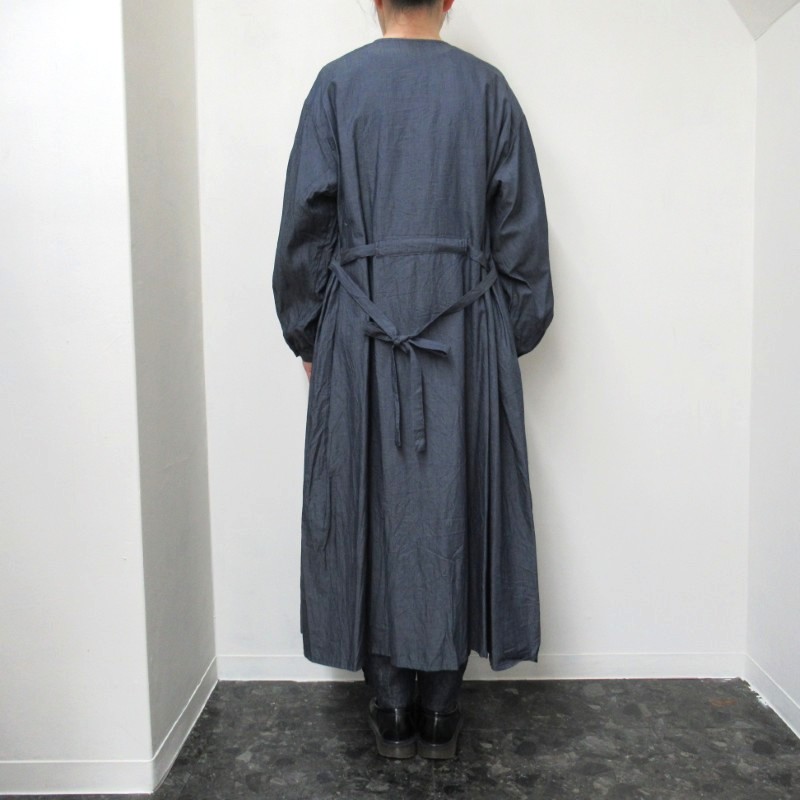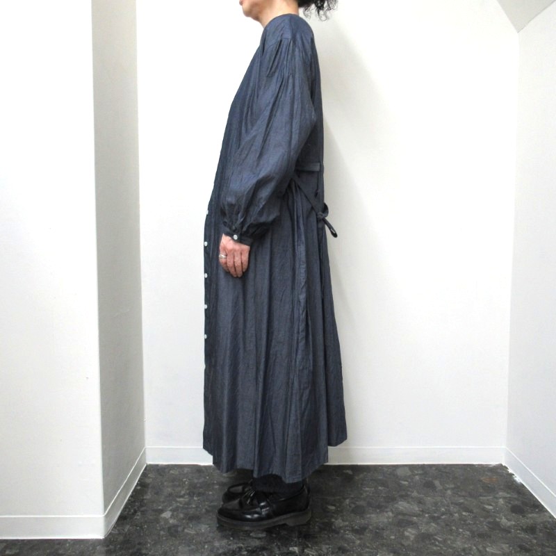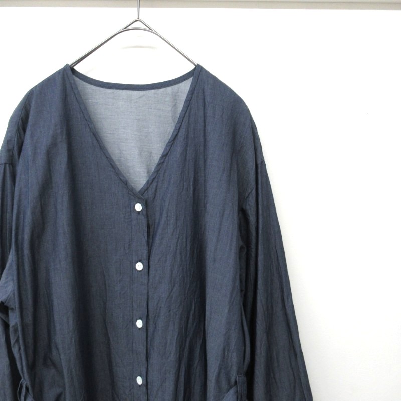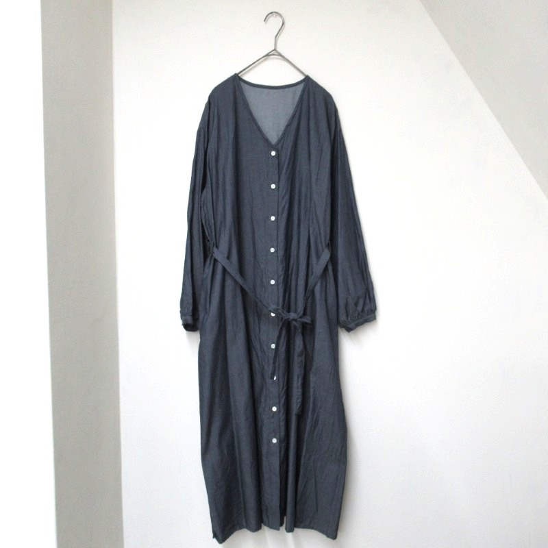 3.25ozの軽やかなデニム素材の前開きワンピース。