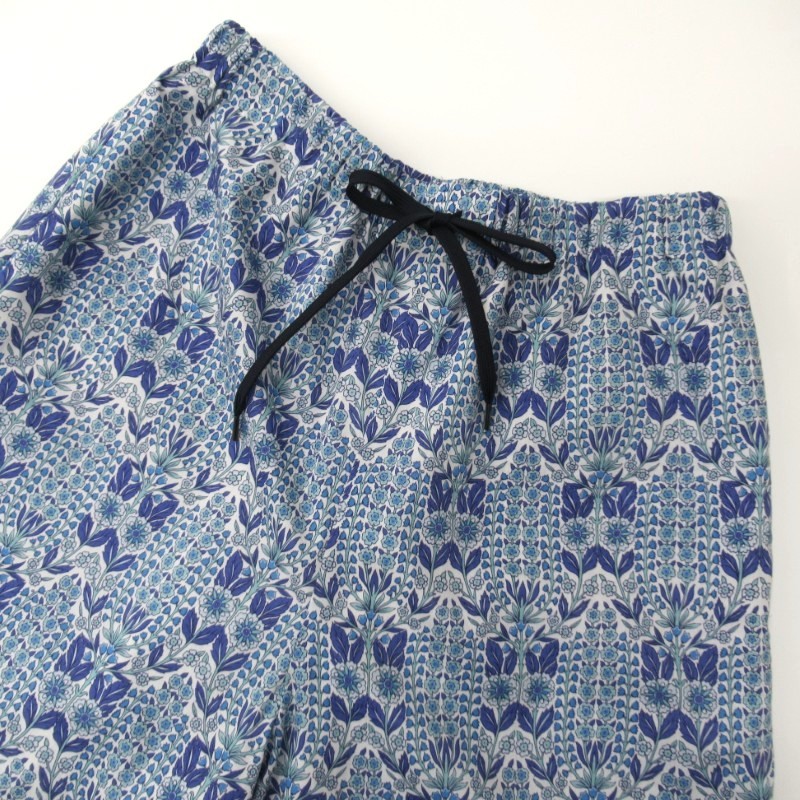 華やかなリバティ生地のイージーパンツ。