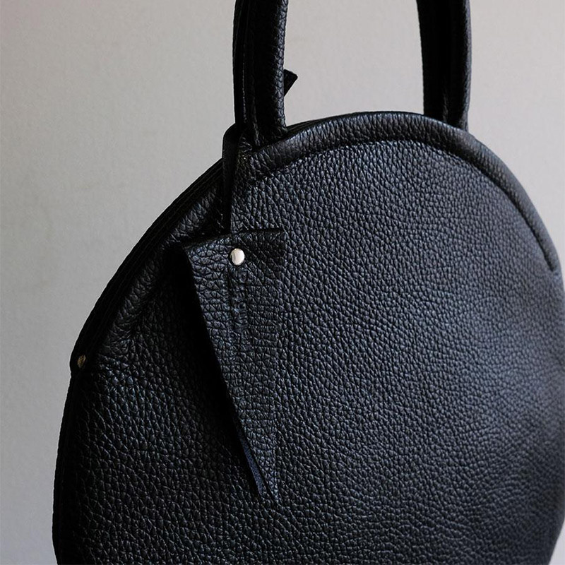 中国の銅鑼から着想を得た、コンパクトなサイズの手提げバッグです。