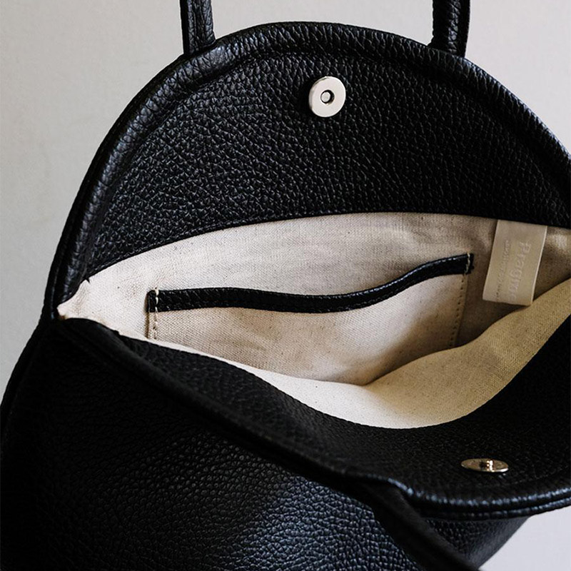 内側には綿麻の布貼りがあり、ポケットがひとつ付いています。マグネット式の釦で開閉して頂けます。