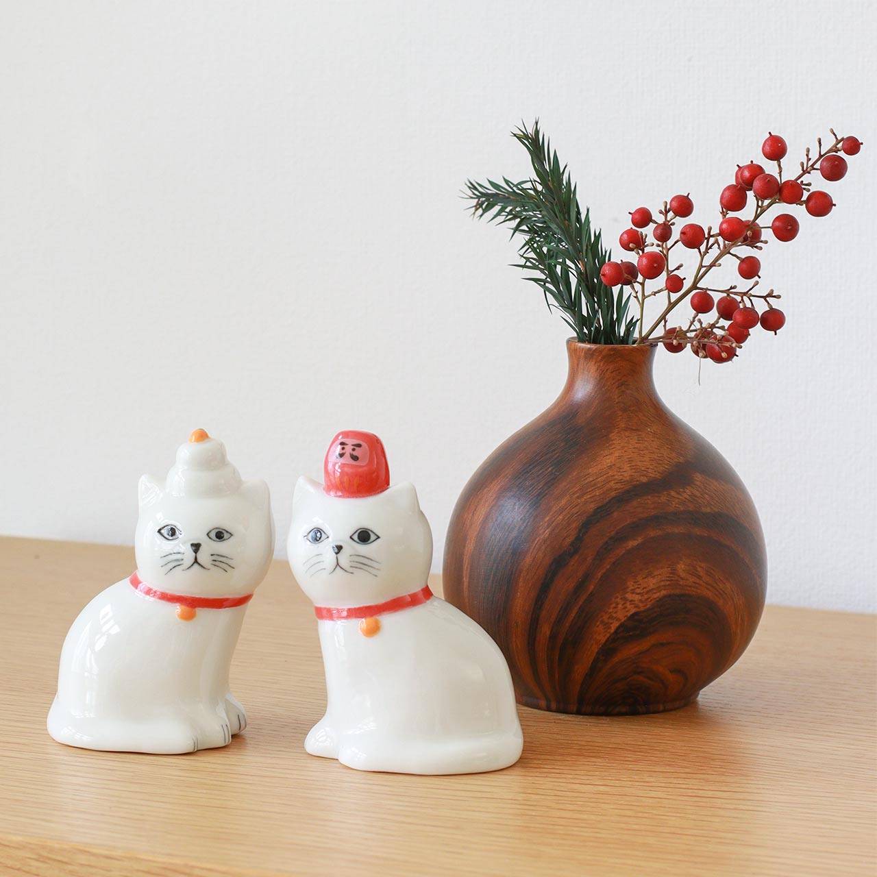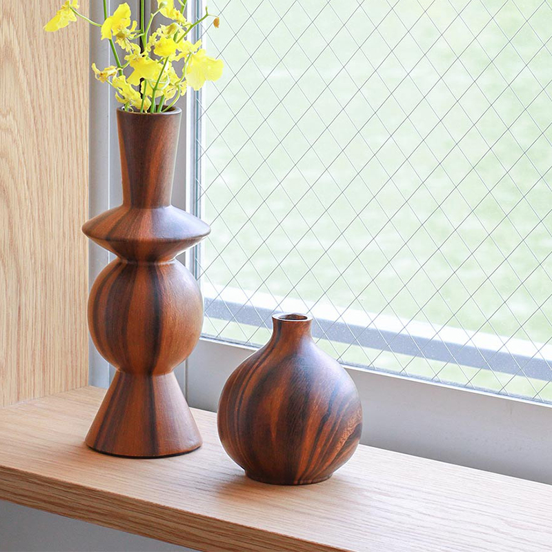木のぬくもりを感じさせる、陶器製のフラワーベース