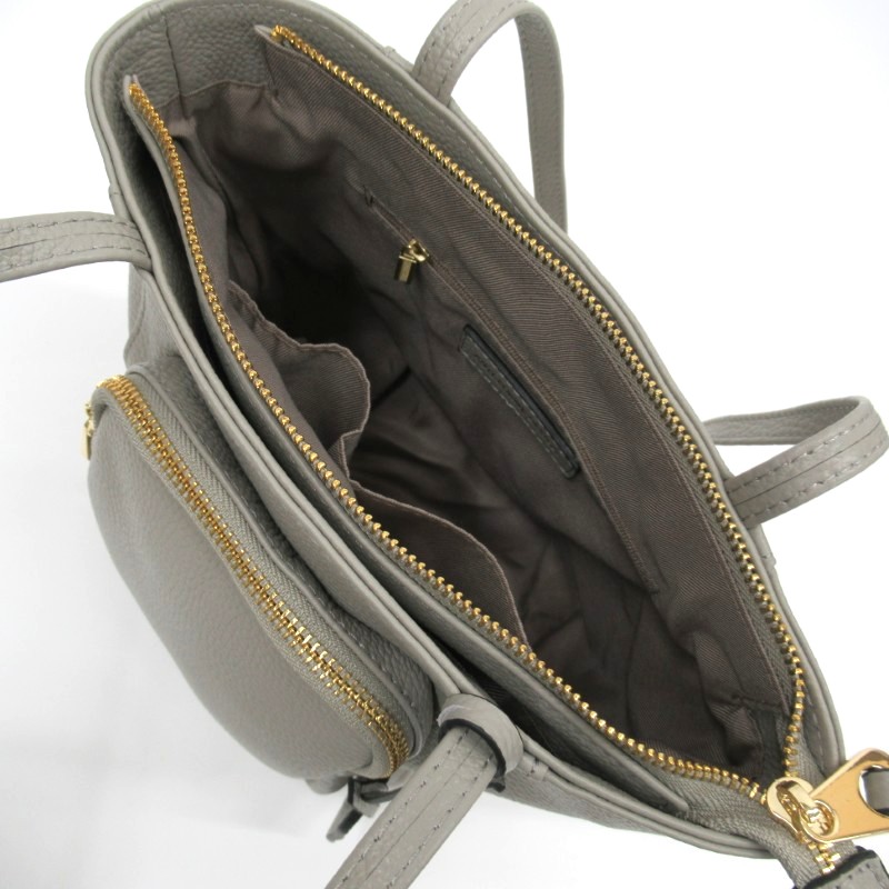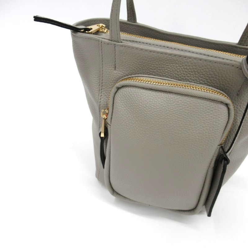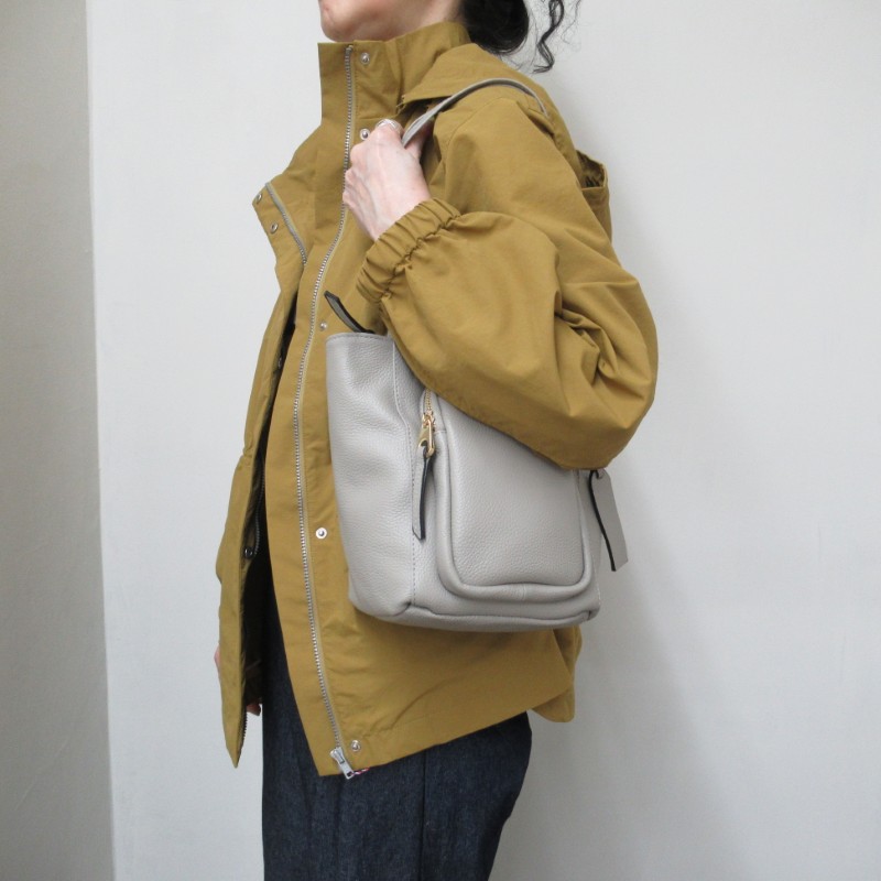 ソフトな質感のシボのあるカウレザーを使用し軽量で、持ち手は肩に入りやすい長さ◎