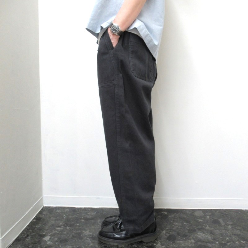 製品染めでよりラフ感のある風合いが良い雰囲気のテーパードシルエット。