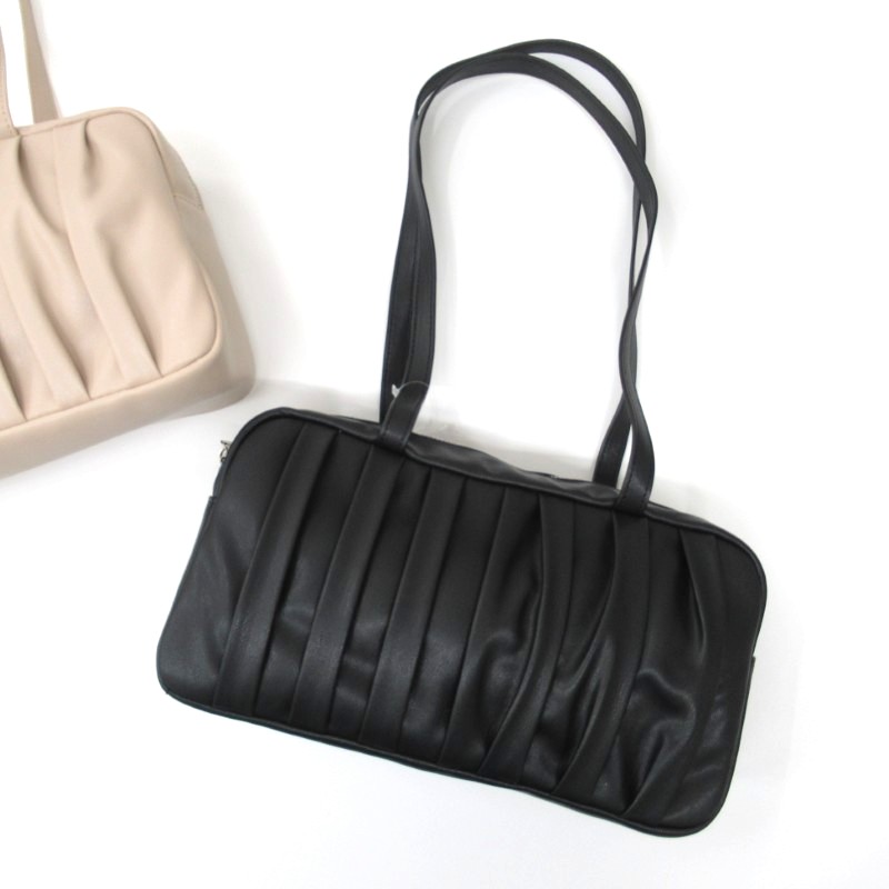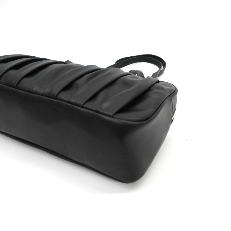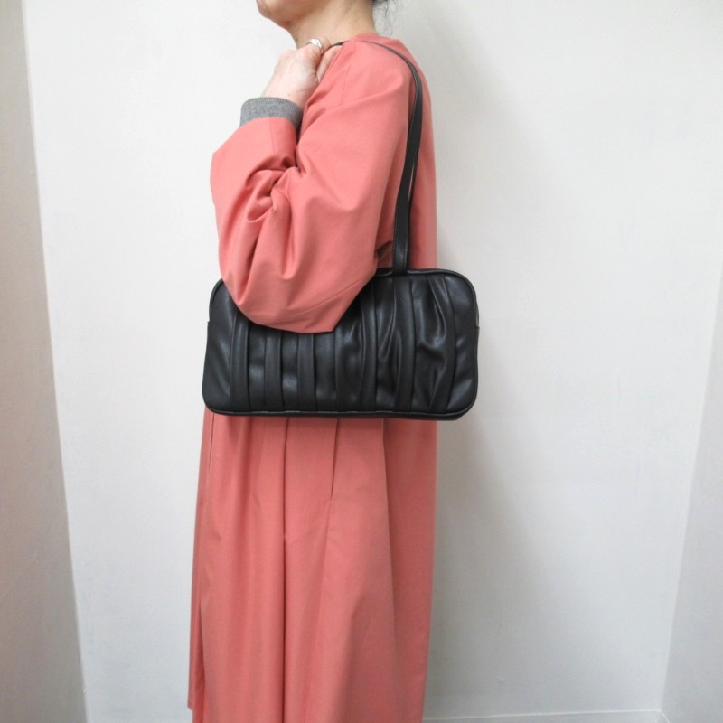 フロントたっぷりと寄せられたギャザーデザインが目を引く、上品で存在感のあるボストンバッグ。