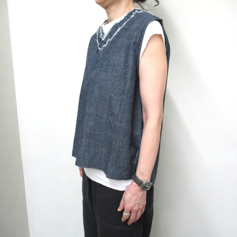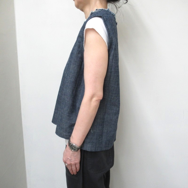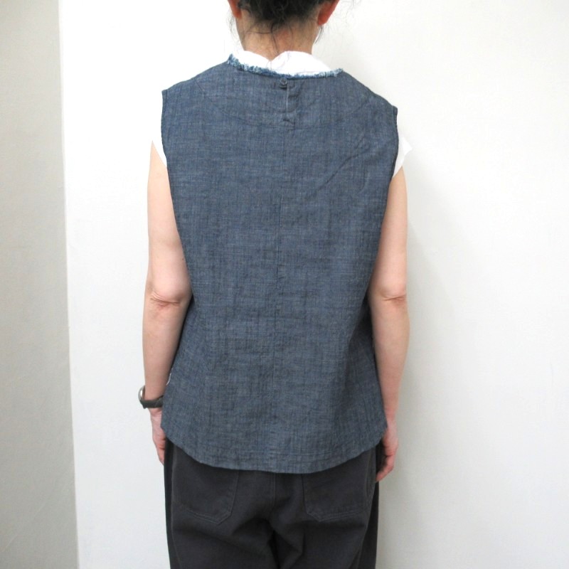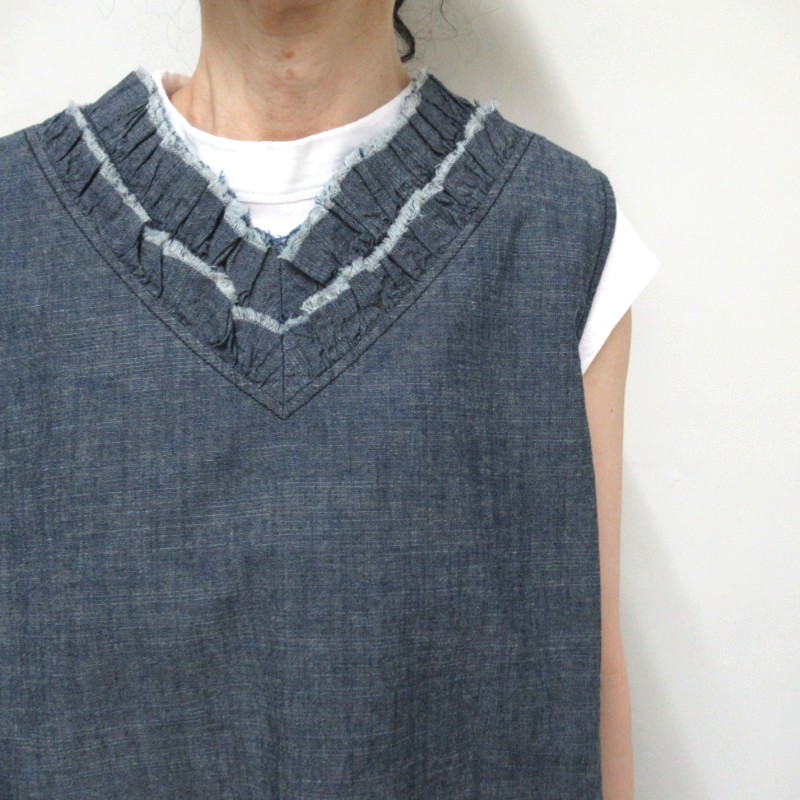 LAITERIE 綿麻スラブデニムフリルベスト /INDIGO78
