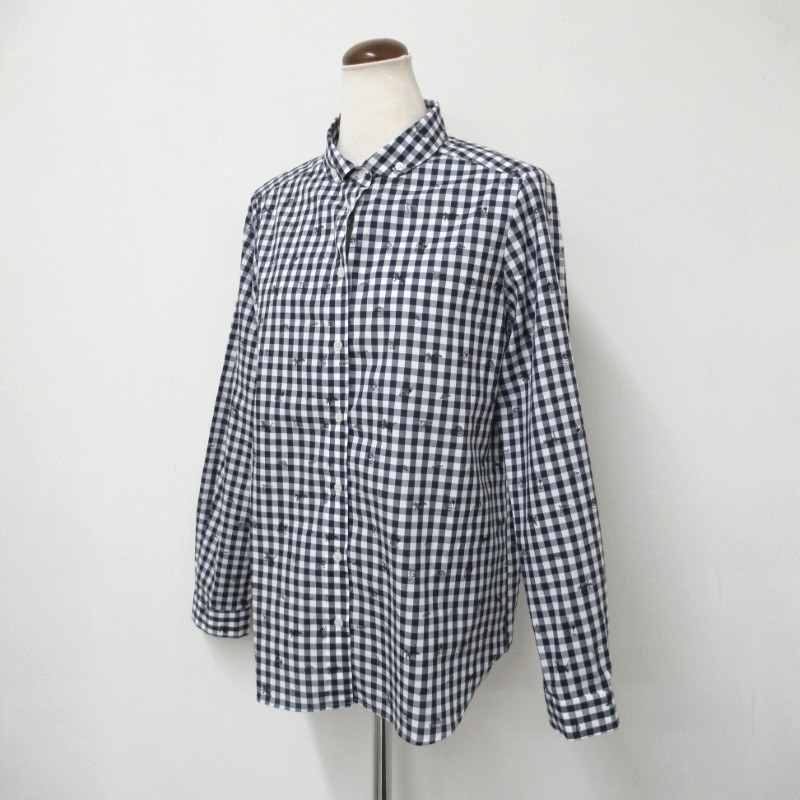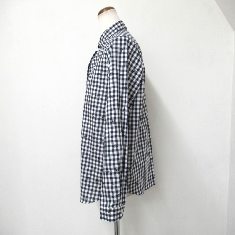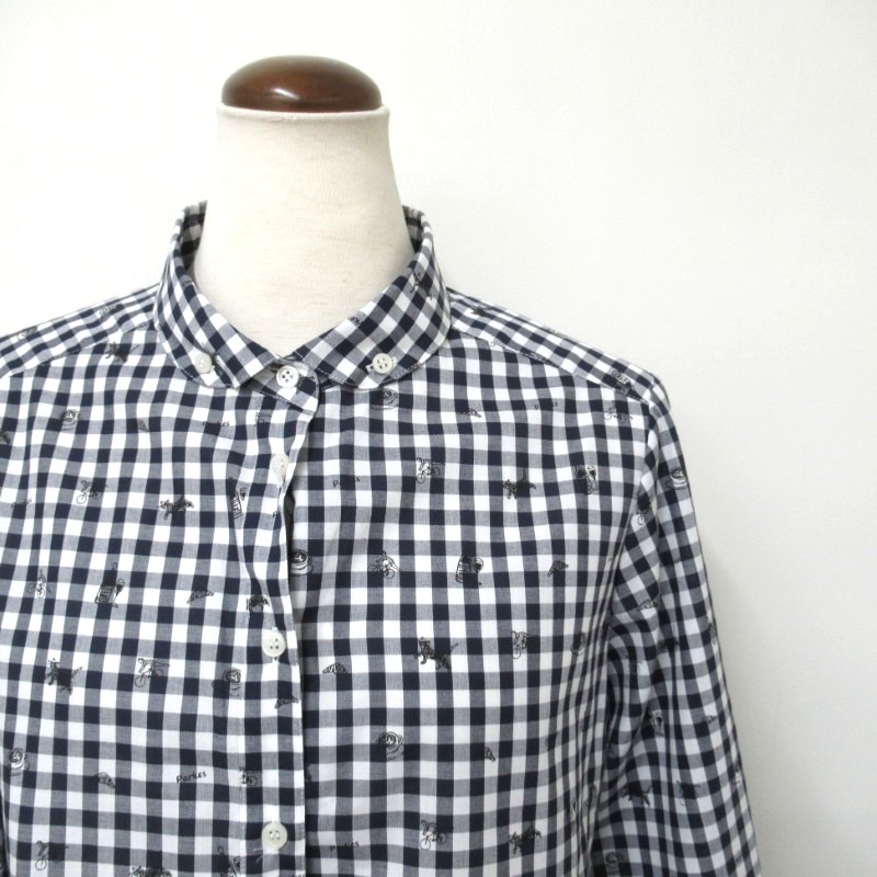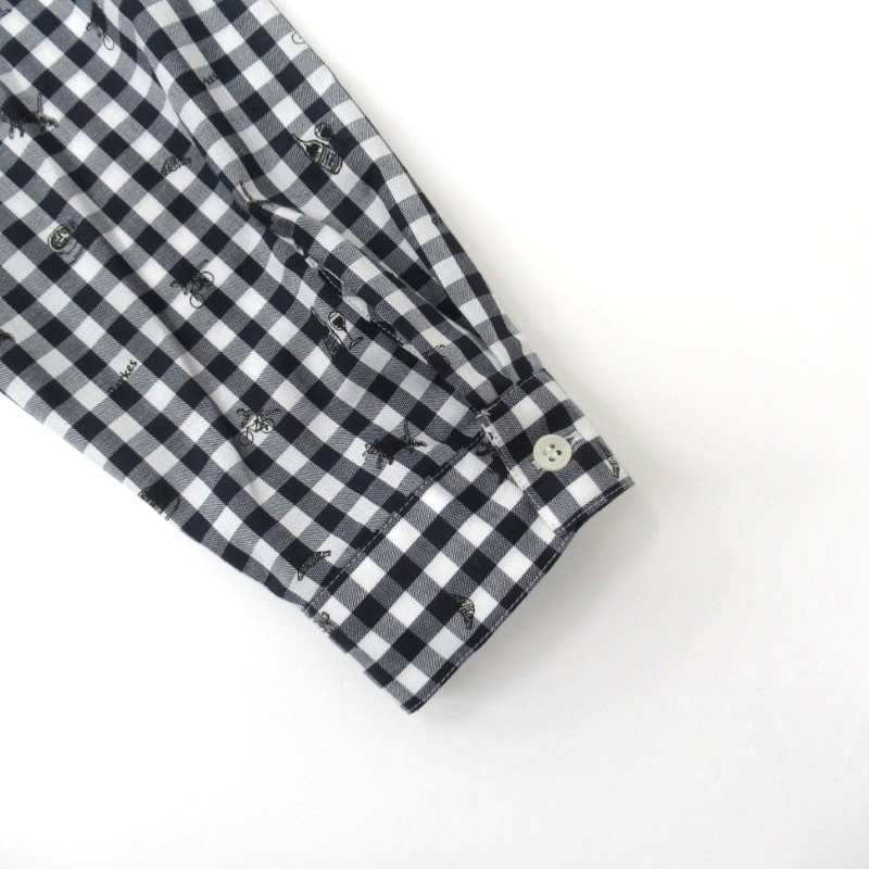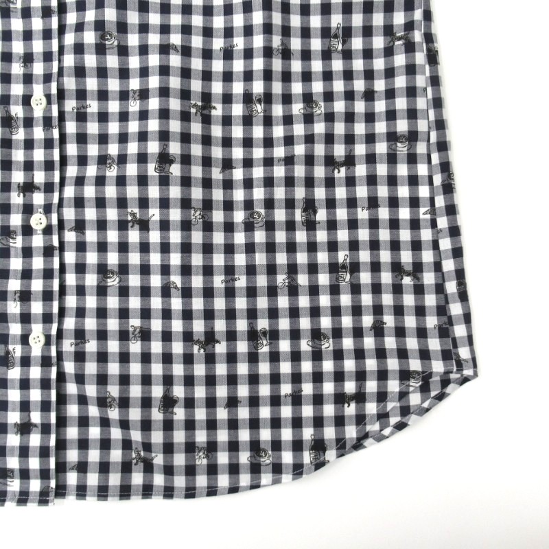 ギンガムチェックに小さなイラストをのせたParkesオリジナル生地を使ったシャツ。