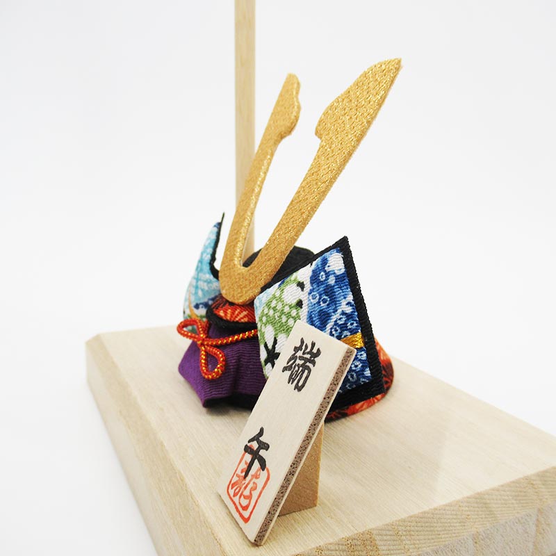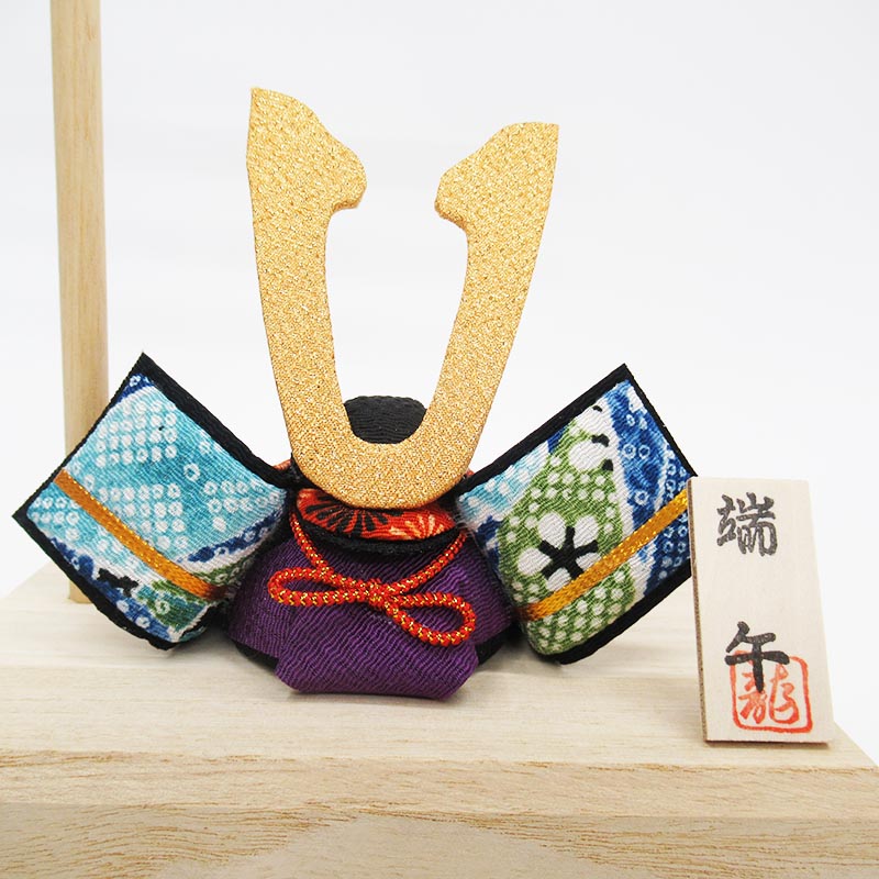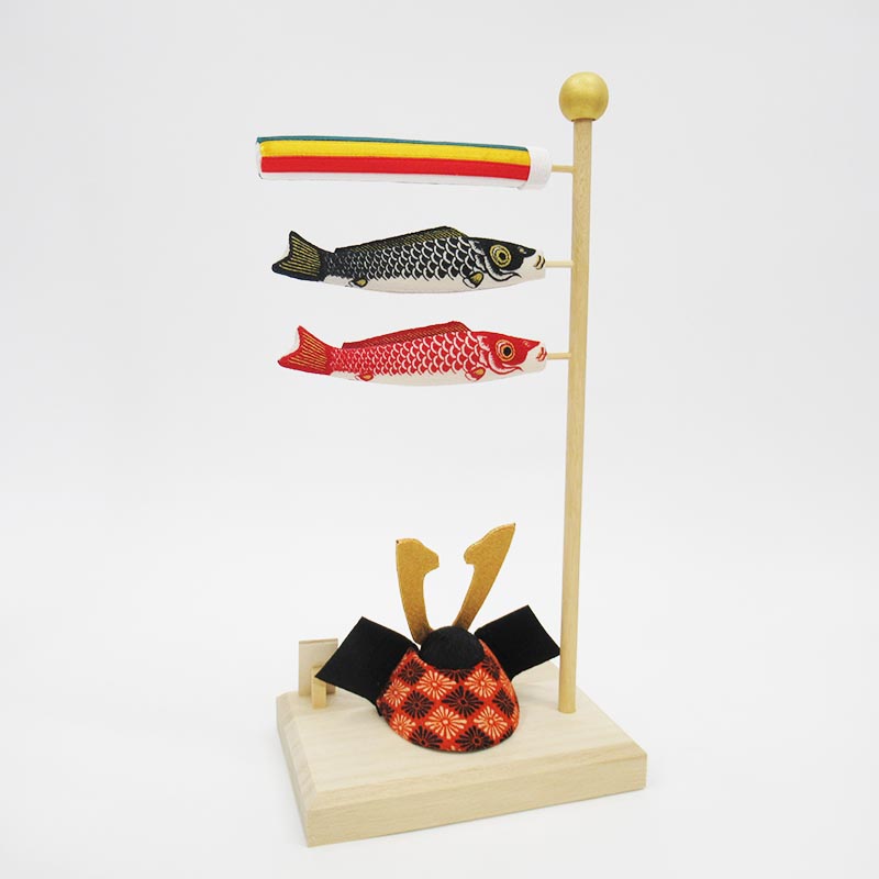 和柄縮緬の風合いが手仕事の温もりを感じさせてくれます。 京都の老舗人形工房、龍虎堂(リュウコドウ)の五月人形です。 鯉のぼりと兜を一緒に飾れるお手頃サイズの端午の節句飾りです