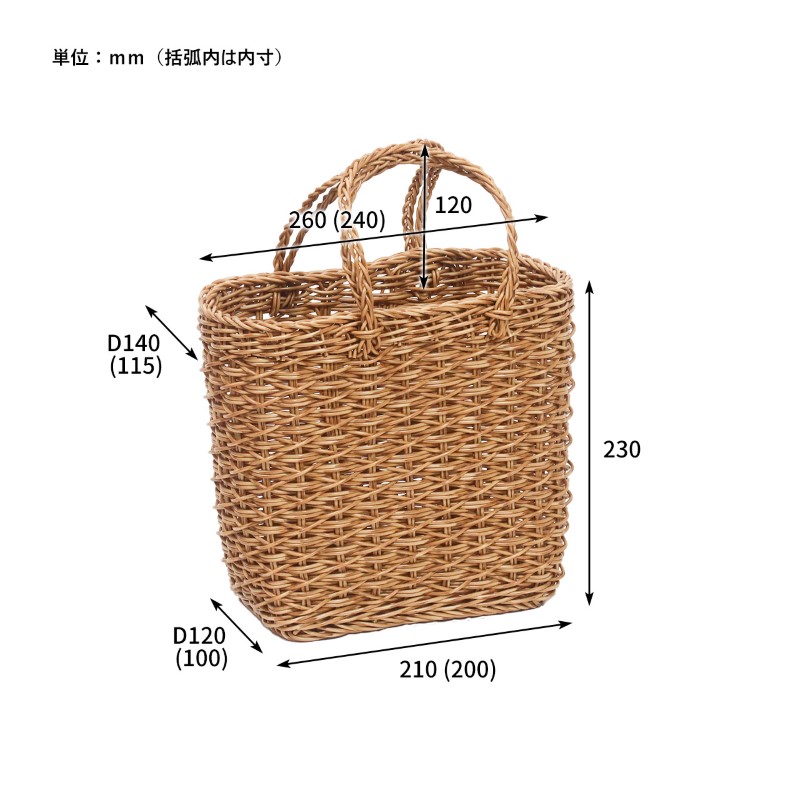 | サイズ | w260×d140×h230mm(持ち手h120mm) |