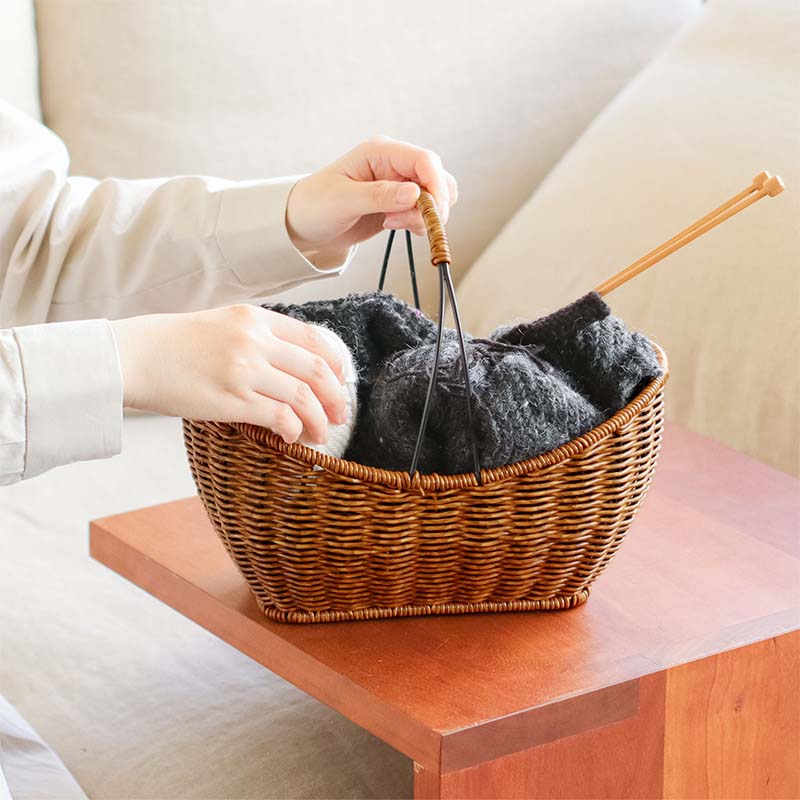 持ち手部分には、あえてアイアン素材を採用。ナチュラルなかごの表情の中に程よいメリハリが生まれ、甘くなりすぎず、空間をきりっと引き締めてくれます。