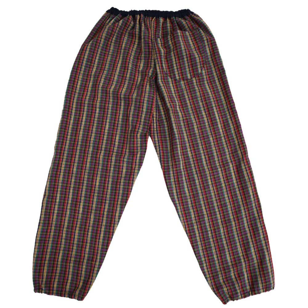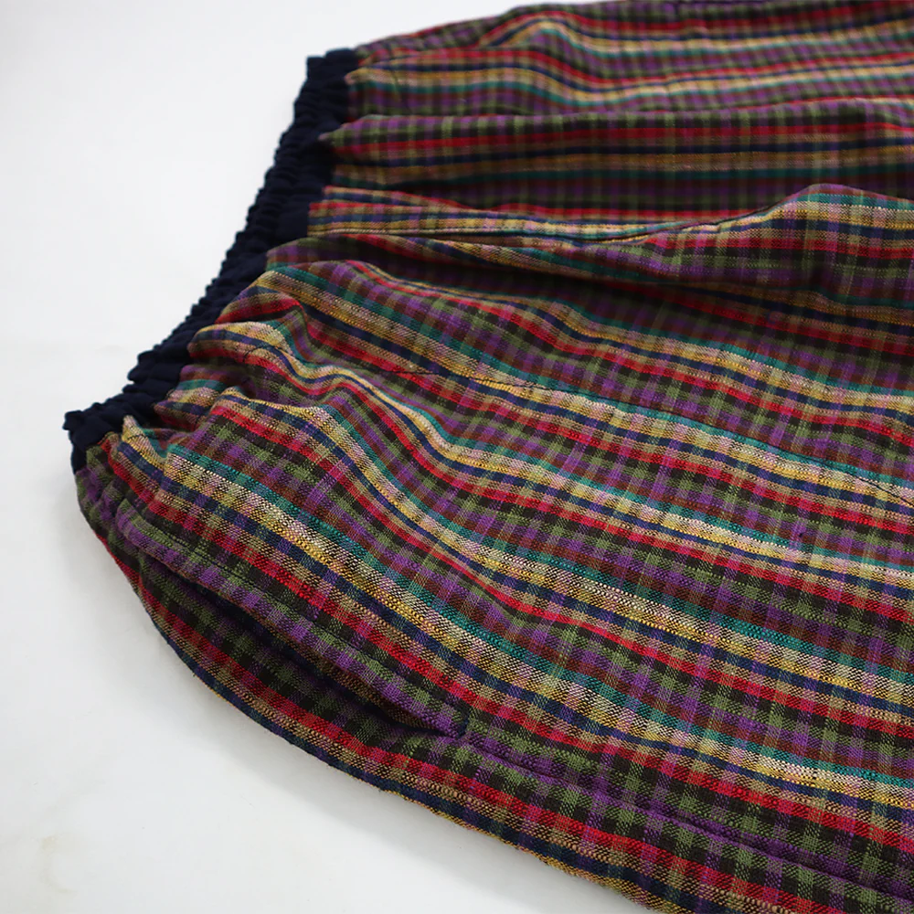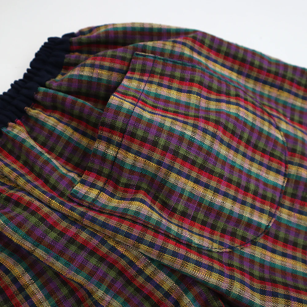 久留米絣の新定番「もんぱん」です。履きやすく動きやすいもんぺの良さはそのままにパンツ感覚で使える現代風のデザインを取り入れました。裾ゴムを少し絞った仕様で足元すっきりです。