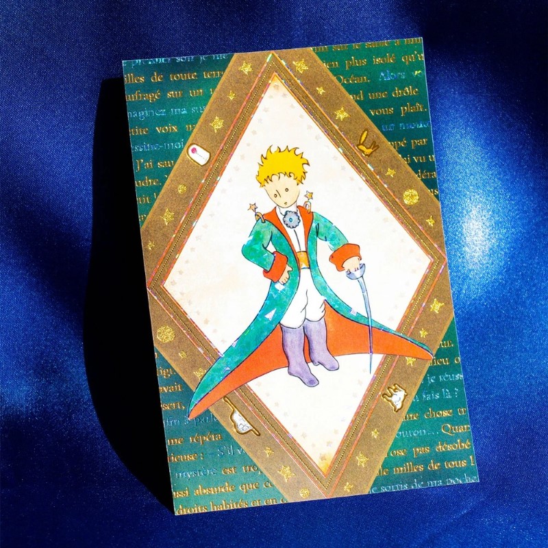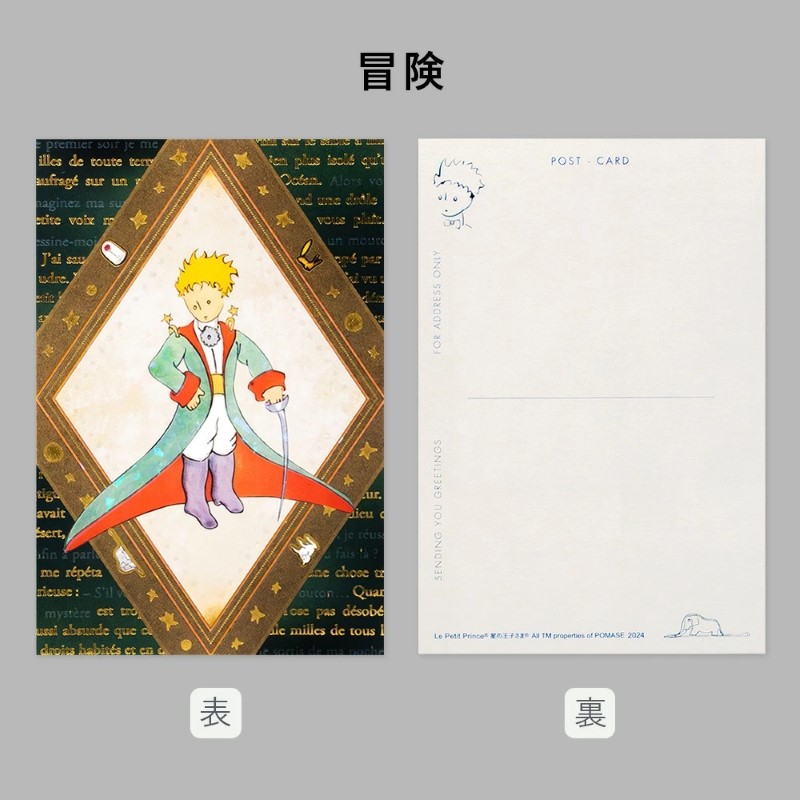 小さな王子さまの大冒険をテーマにした箔押しポストカードです。