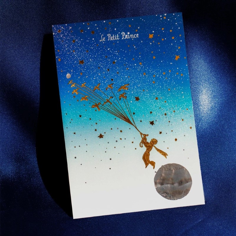 小さな王子さまの大冒険をテーマにした箔押しポストカードです。