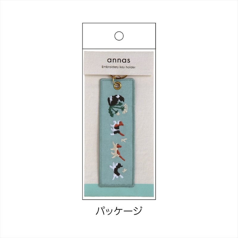 刺繍で表現された動物たちが並んでいる姿が可愛い!縦長のベースに愛らしい刺繍がほどこされたキーホルダーです。