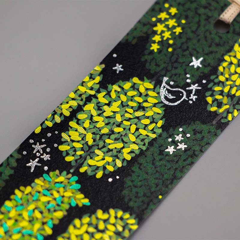 箔押し加工が施されたしおりがキラキラと目印になってくれます。
