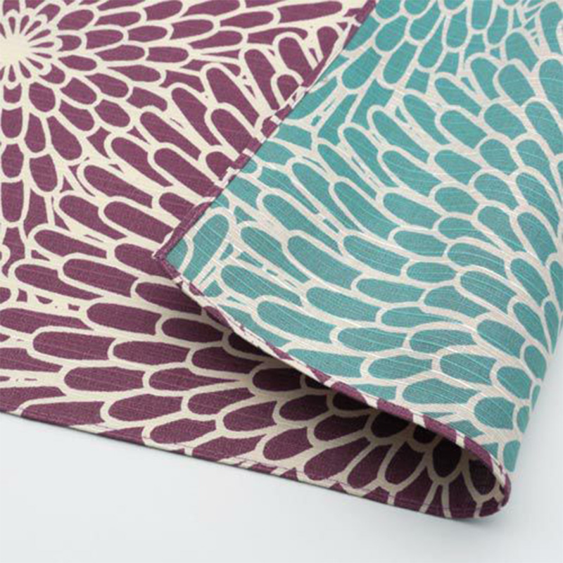 全く同じ柄を表裏に異なる色で染まっていますが、この染色方法は両面染めの中でも、極めて特殊で高度な技術を誇ります。