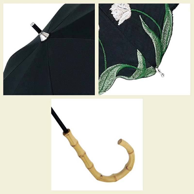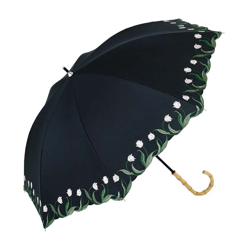 because B-961384 バンブー&チューリップ刺繍パラソル(晴雨兼用) BK