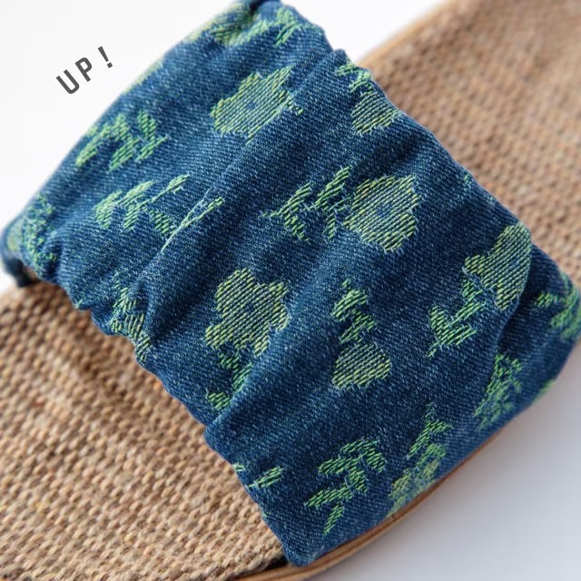 人気のジュートソールにデニム柄生地を合わせ、大人カジュアルなスリッパができました。