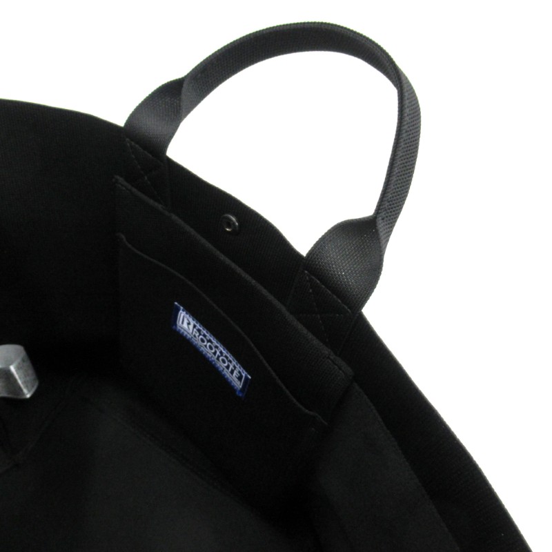 底マチたっぷりで収納しやすく、便利なROOポケット付き。