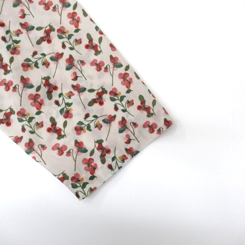 華やかなリバティ生地の7分袖シャツ。