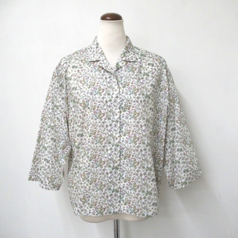 華やかなリバティ生地の7分袖シャツ。