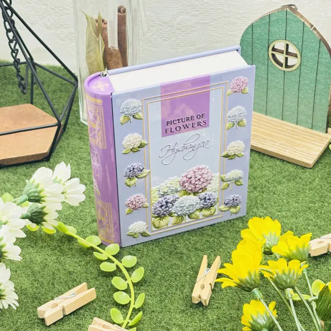 紫陽花をデザインし、エンボス加工を施したブック缶です。