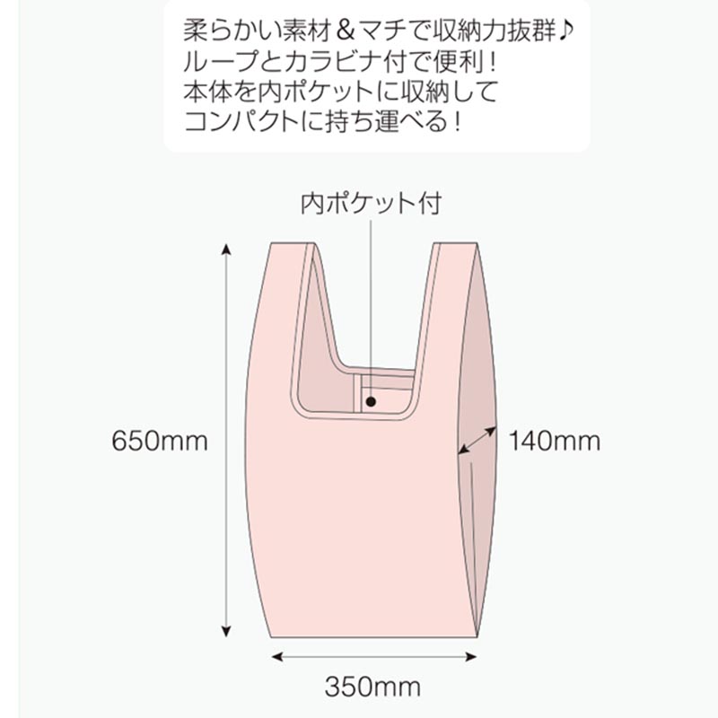 本体を内ポケットに収納してコンパクトに持ち運べるカラビナ付きエコバッグ。