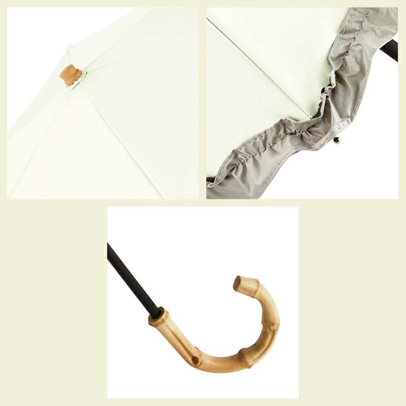 | 備考 | ○手開きタイプ ○Safe Guard(セーフガード) 開閉時に指や爪を傷めないようにロクロ部分に安全カバーが付いています。 傘を開く時は親指を添えてカチッと音がするまで傘を広げてください。抑えたまま広げると開けない場合があります。 ○SUN & RAIN UVカット加工と防水・はっ水加工を施した【晴雨兼用傘】です。 |