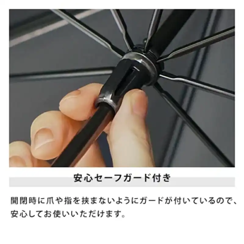 傘を開く時は親指を添えてカチッと音がするまで傘を広げてください。抑えたまま広げると開けない場合があります。