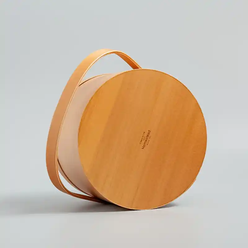 シェーカーの道具にヒントを得て作った正円型のラウンドボックスに、淡いカラーが特徴のライトブラウンシリーズが登場しました。素材は家具や楽器などに広く用いられているアガチス材で、ホワイトやグレーを基調とした空間に自然に馴染みます。