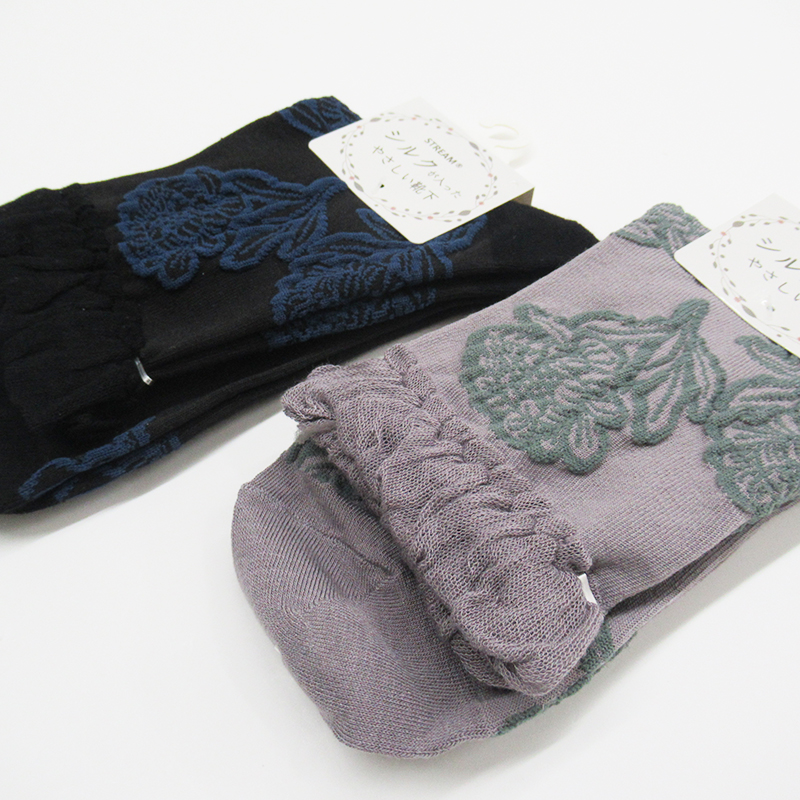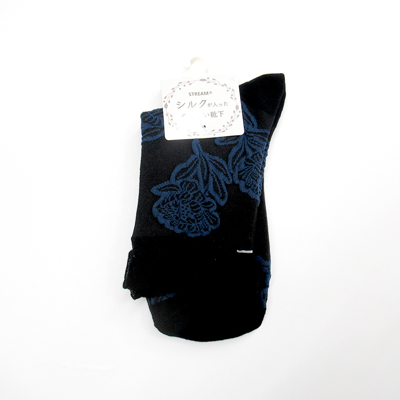STREAM ピコット花柄クルーソックス/BK