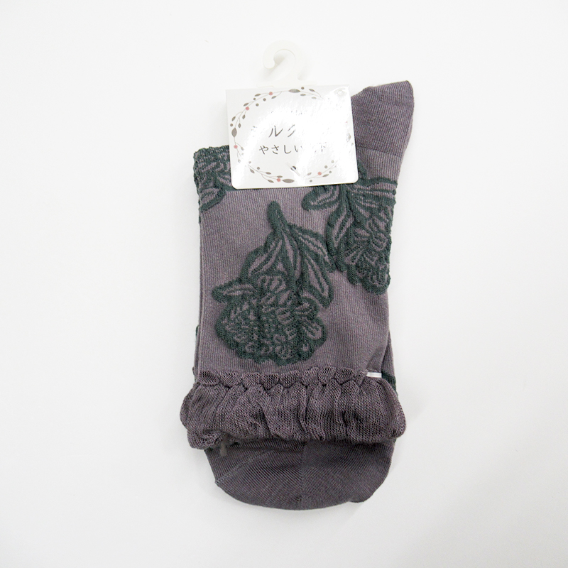 STREAM ピコット花柄クルーソックス/GY