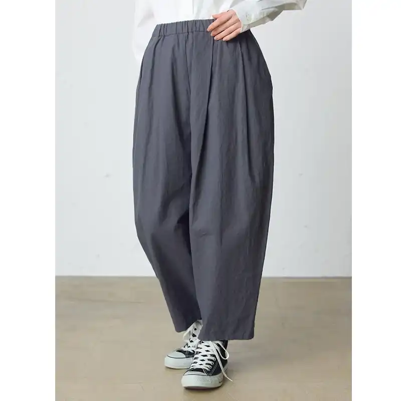 コットンリネンのキャンバス地を使用したイージーパンツ。