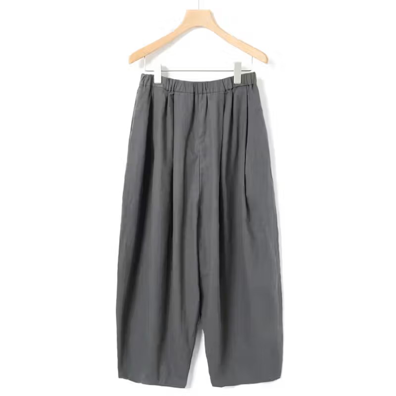 シルエットは、腰まわりにゆとりを持たせたワイドシルエットに、裾にかけてやや細くなるテーパード型。