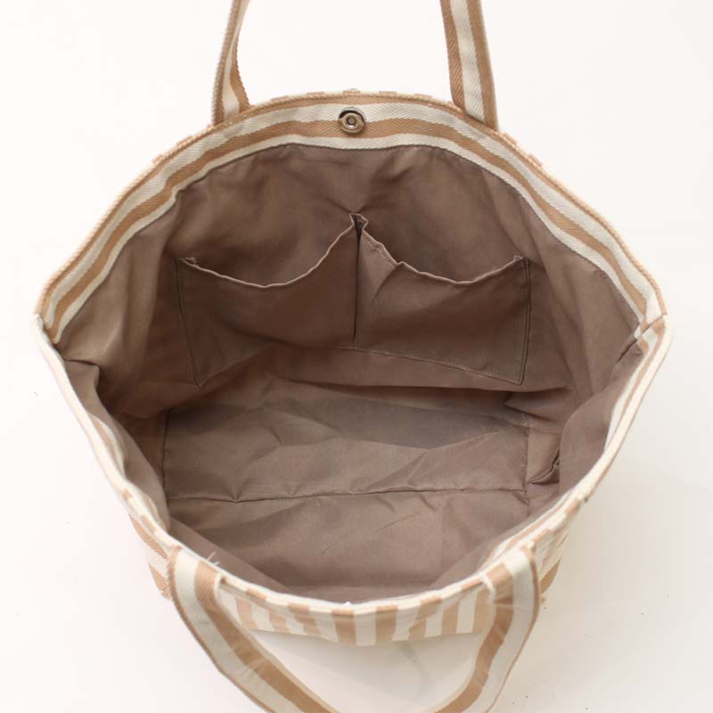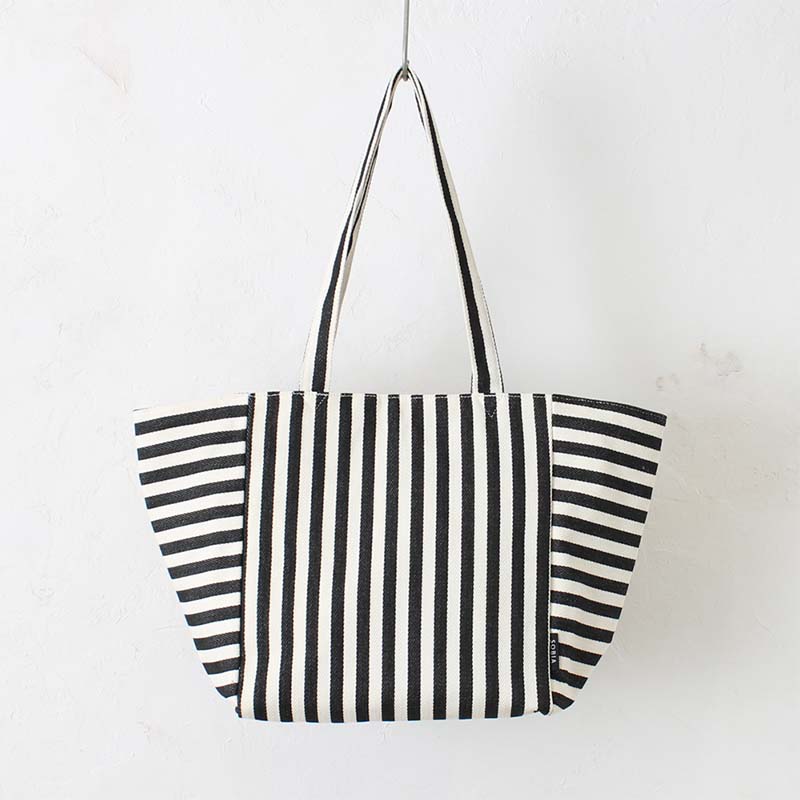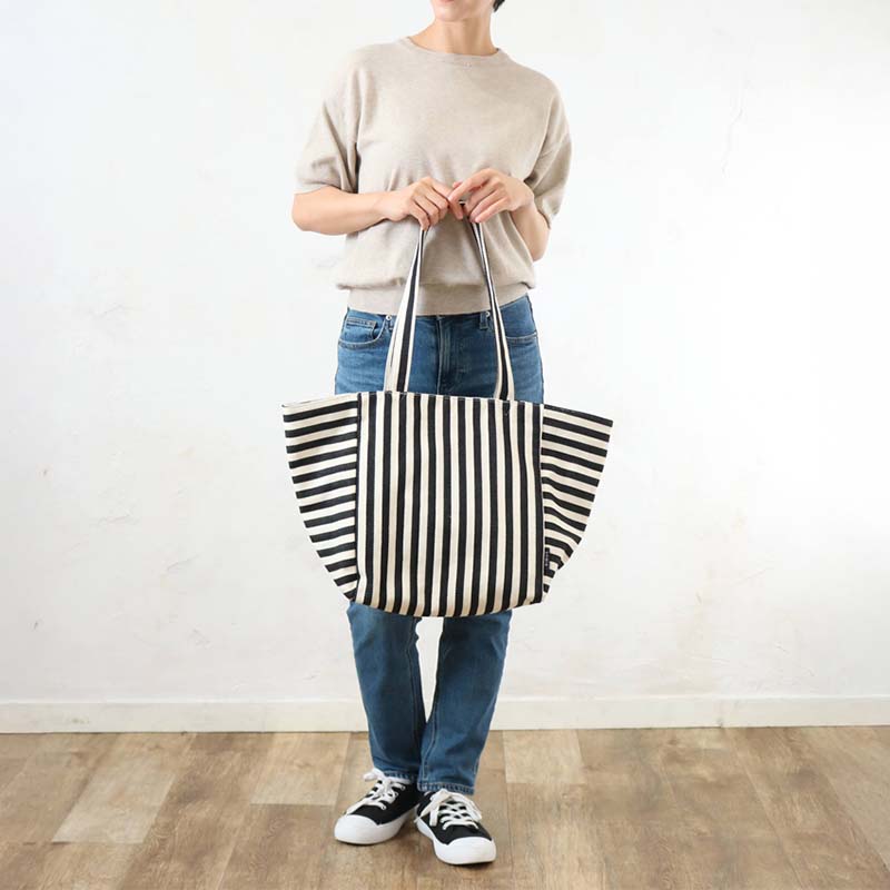 カジュアルスタイルに映える、爽やかなストライプ柄の大容量ビッグトートバッグ