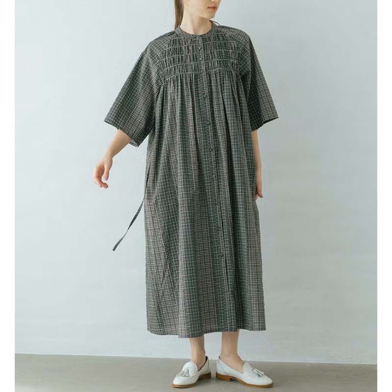 ベーシックでナチュラル感のあるタータンチェックと2色を切り替えたような細かなタータンチェック、イメージの違う2種類のチェックを使用したワンピースです。