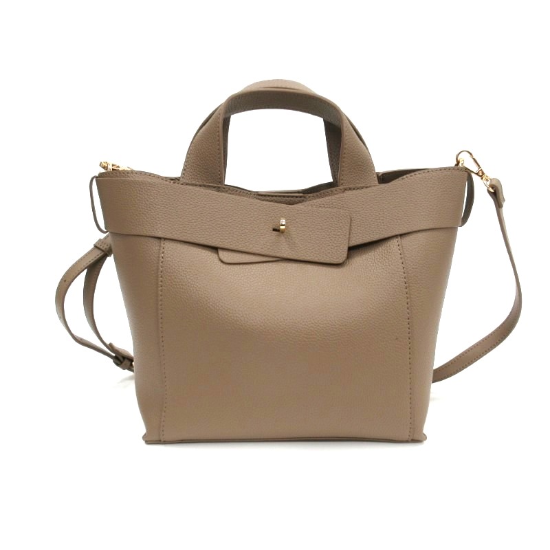 シボのあるフェイクレザーとニュアンスカラーが高級感のあるバッグ。