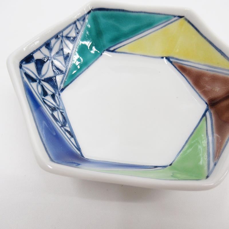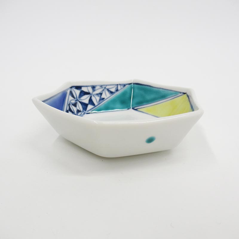 安東眉石窯 六角小付 色釉小紋