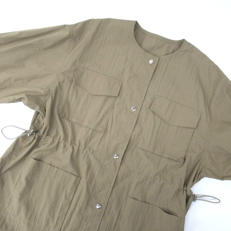 マットなカラーにほんのりとした光沢感があるしなやかな素材感。ウエストのドローコードでフェミニンさもプラスされています。