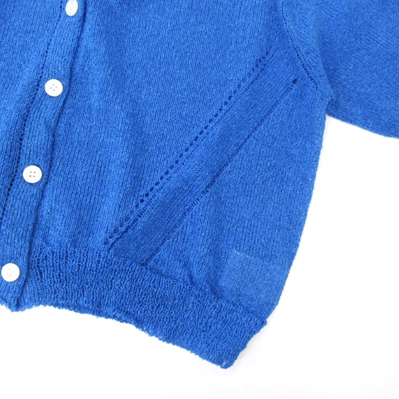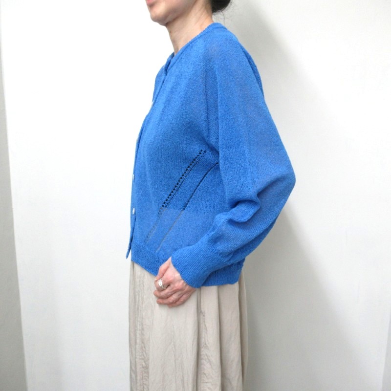 和紙素材をミックスした糸を使い、肌にまとわりつかない軽やかなカーディガン。