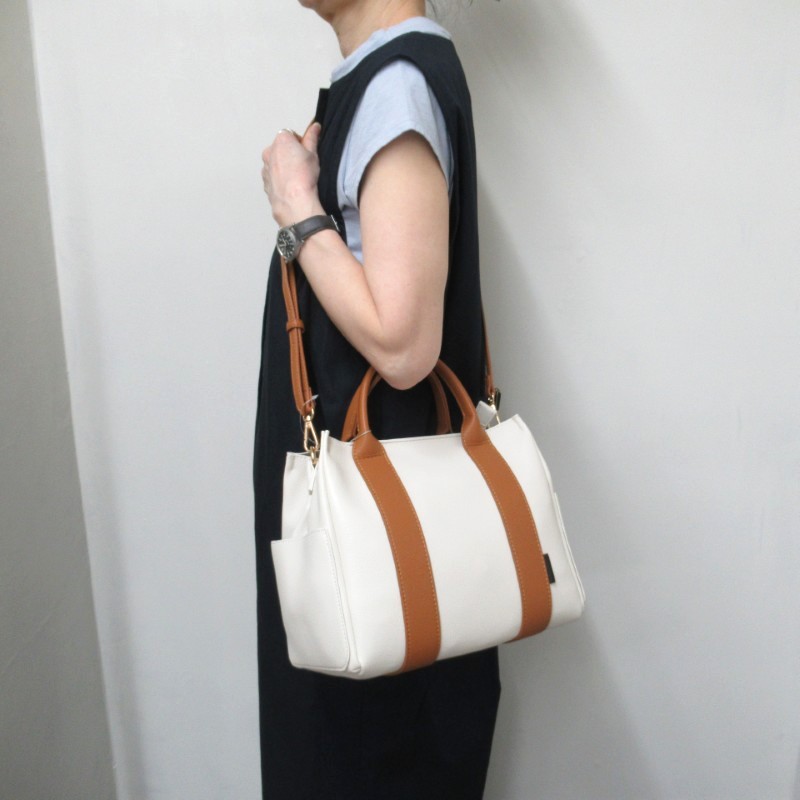 シンプルな見た目以上に収納力のある2wayトートバッグ。