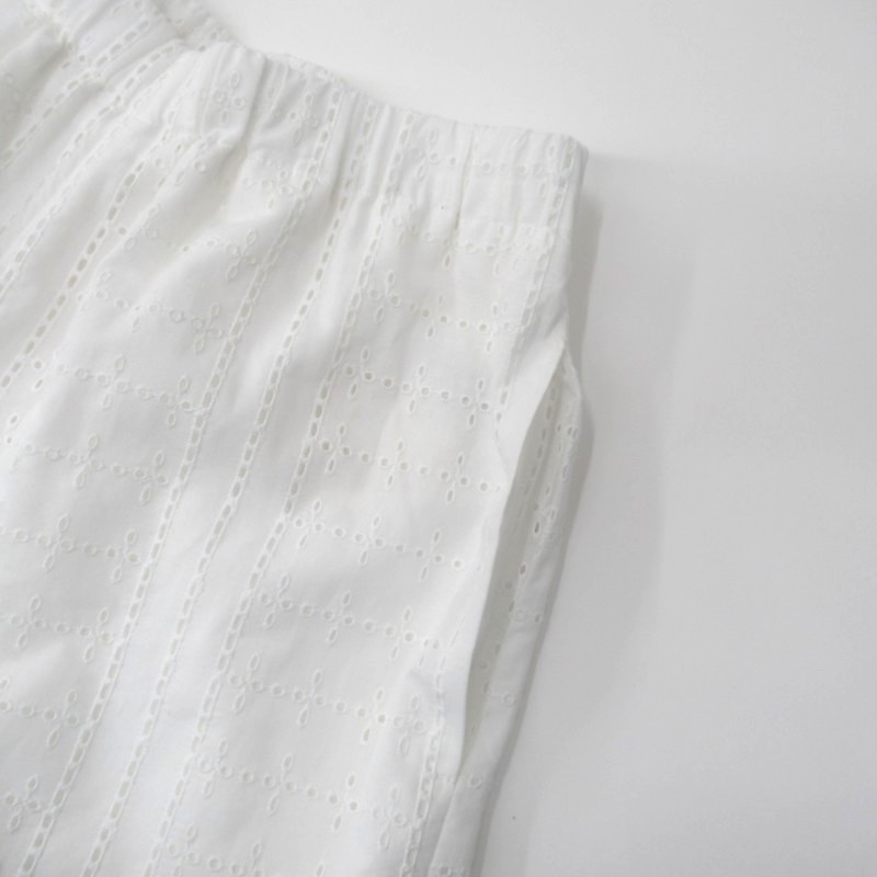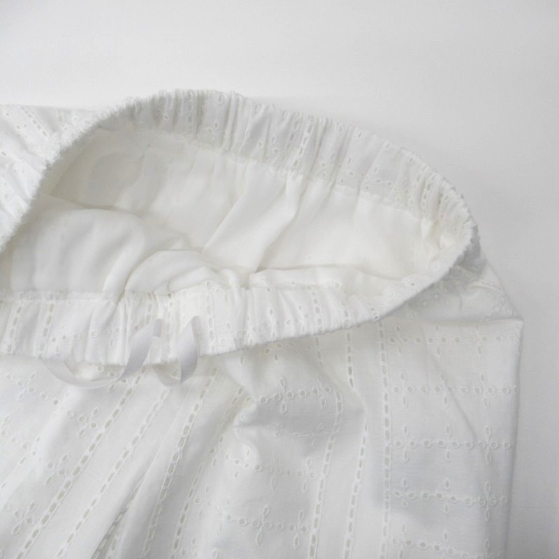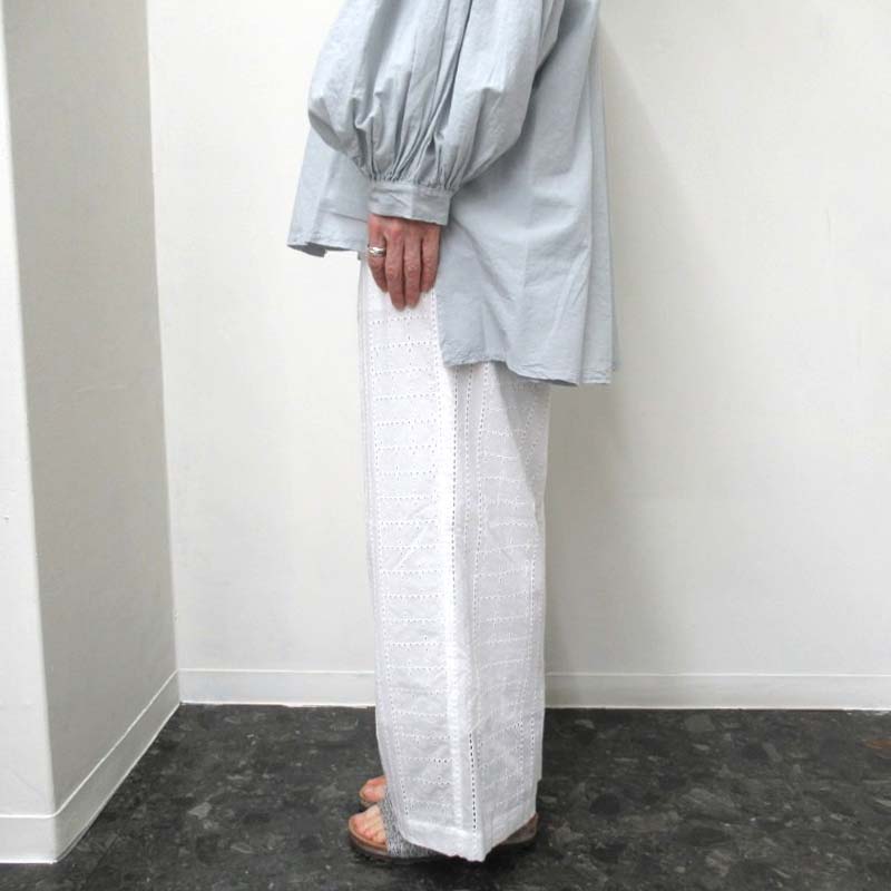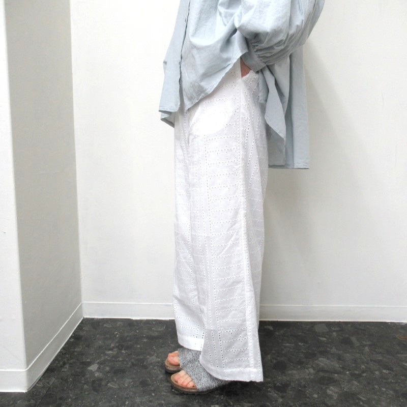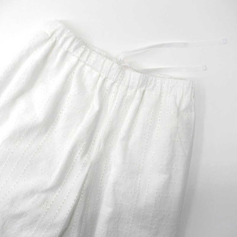 エンブロイダリーレースを全面に使用した華やかなイージーパンツ。